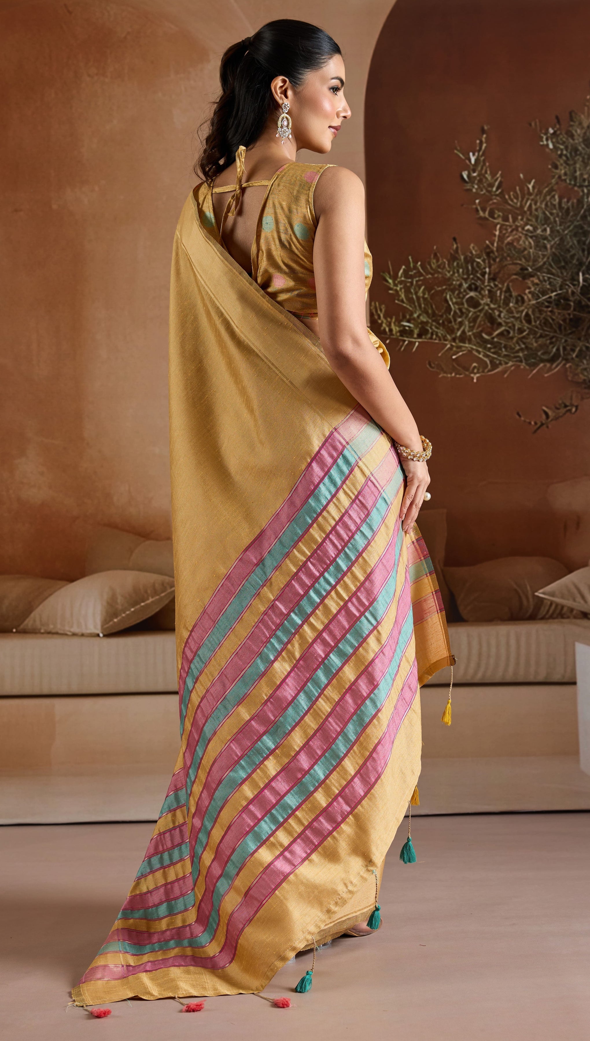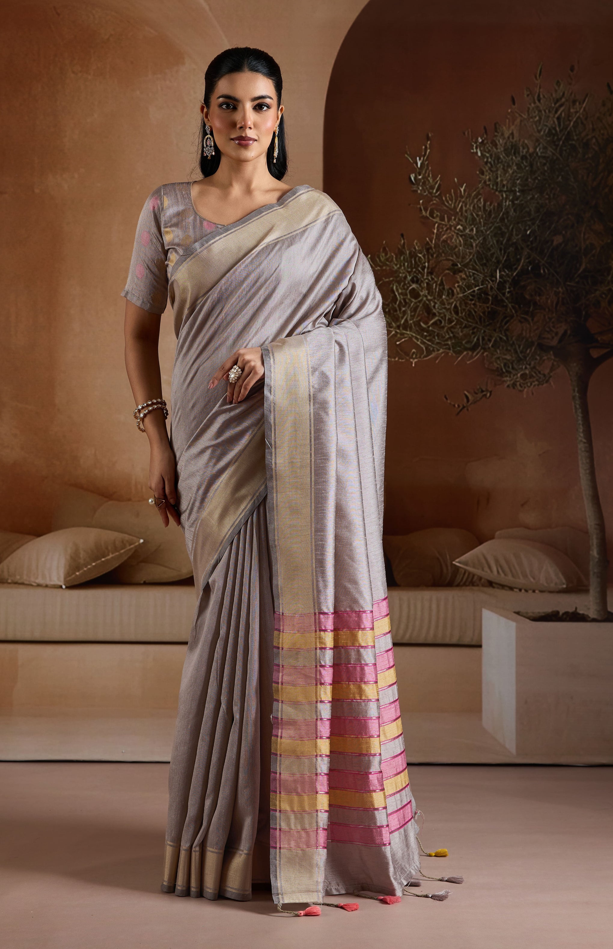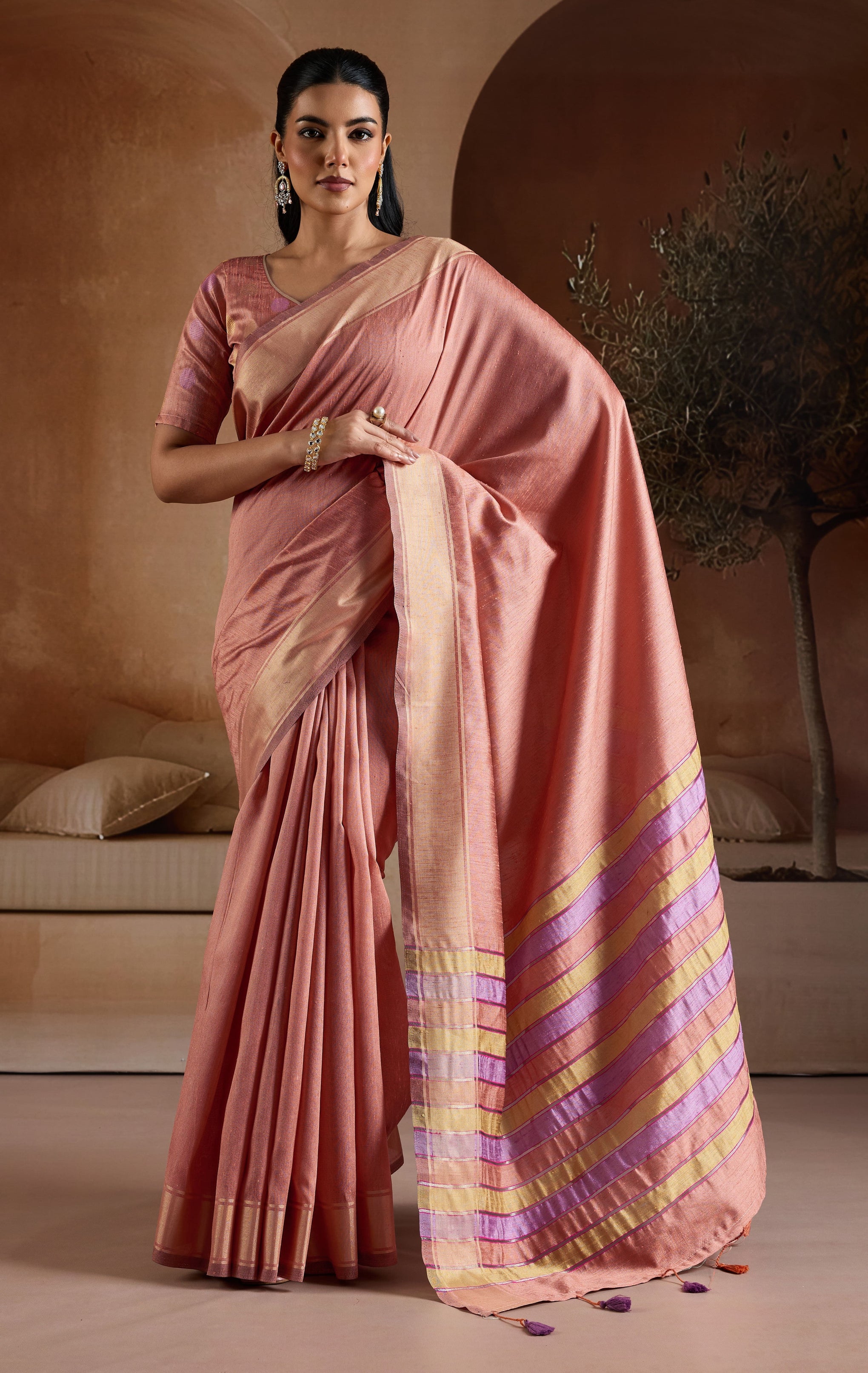 • Saree Fabric: Handwoven Bhagalpuri Blend