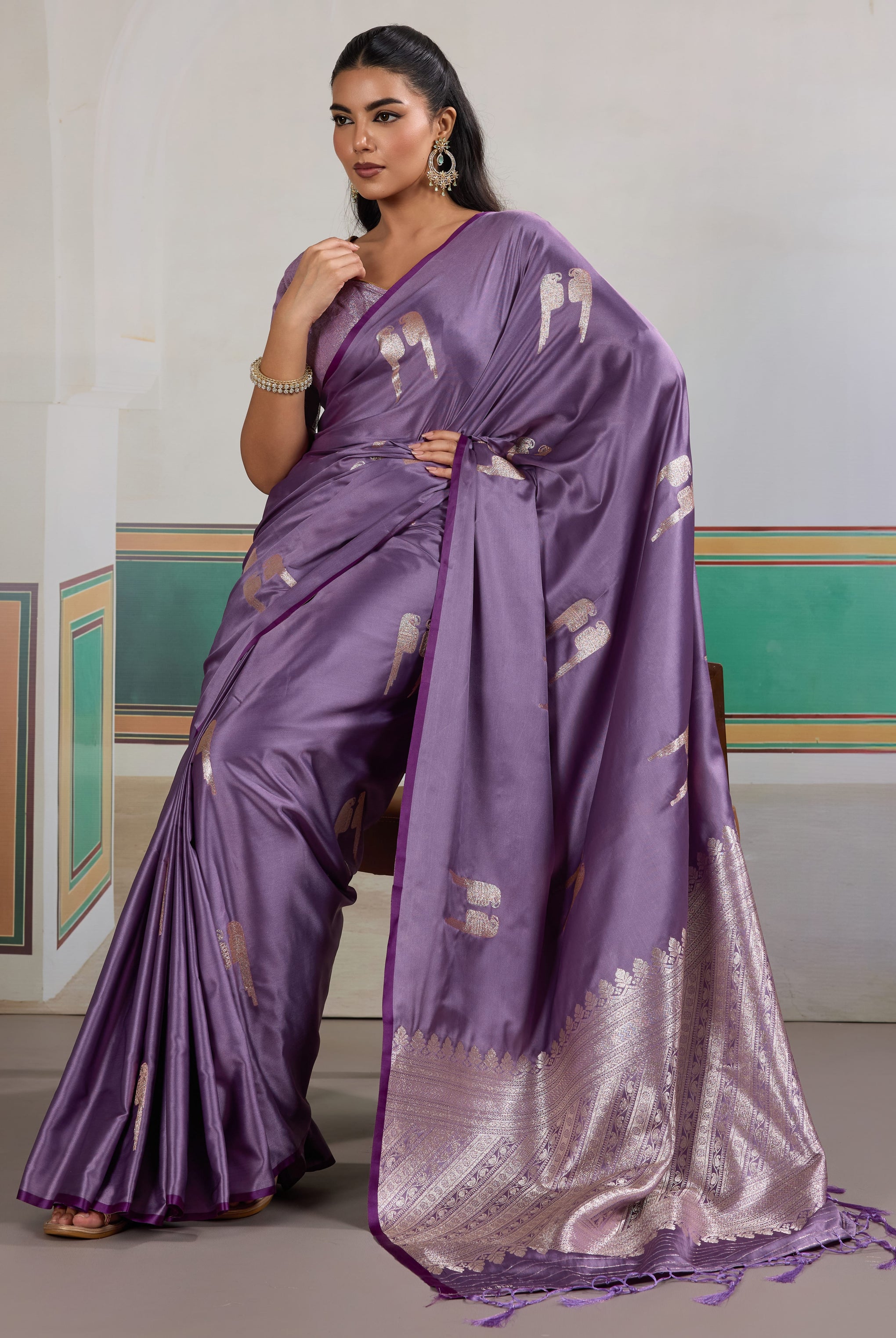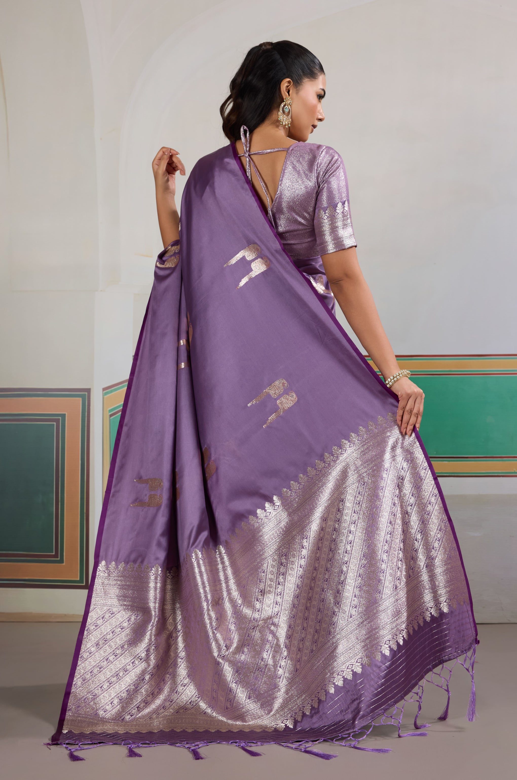 The beauty of this saree is "woven-in," not just printed or embroidered. The HANDLOOM WEAVING technique ensures structural integrity and a unique finish to every piece. The subtle play of light across the satin weave highlights the precision of the artisan, making it a versatile choice for both daytime elegance and evening opulence.