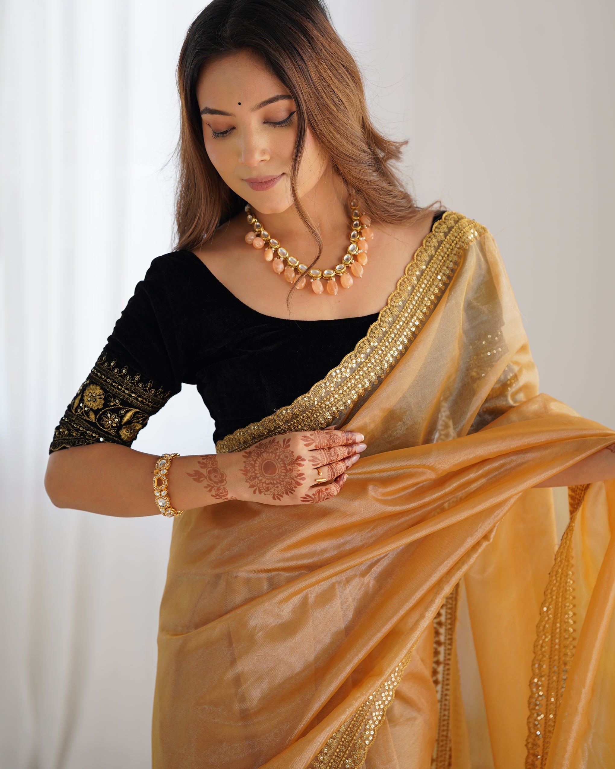 ✨ The Grand Affair Saree: Twill Net with 3mm Sequin & Gold Zari Work ✨